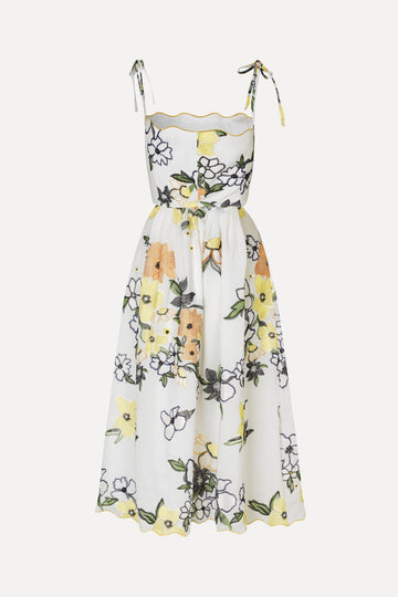 Scalloped Cut Out Dress - Wild Flowers Embroidery